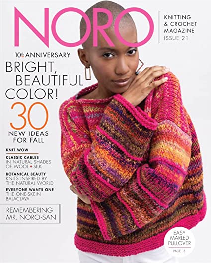 "Noro" knitting magazine is a bi yearly magazine which Includes up to 35 designs in each issue, a combination of new projects and the most popular from past collections. There are also interviews with other designers, workshops and inspirational features.